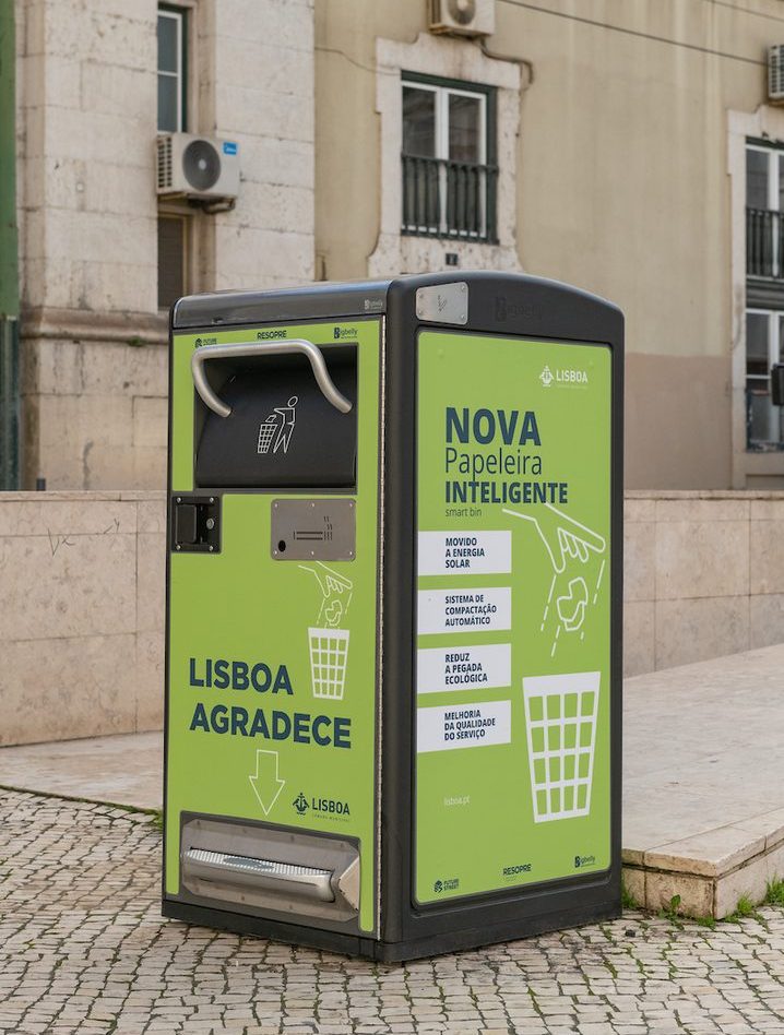 O Município de Lisboa instalou em 2023 papeleiras inteligentes da marca parceira BIG BELLY, no âmbito de um projeto piloto que visa tornar a a recolha de lixo na cidade mais eficiente, eficaz e sustentável. Destacam-se pelas seguintes mais-valias: